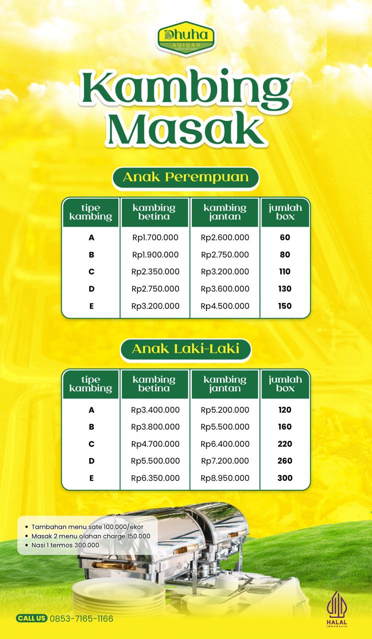 Selamat datang di Dhuha Aqiqah – sahabat terpercaya keluarga Muslim dalam menunaikan ibadah aqiqah dengan cara yang syar’i, praktis, dan pastinya amanah! Kami hadir untuk bantu Ayah dan Bunda menyiapkan aqiqah si kecil tanpa ribet. Mulai dari memilih kambing sehat yang sesuai syariat, proses penyembelihan yang benar, sampai masakan siap santap yang lezat—semua kami tangani dengan penuh tanggung jawab dan kehangatan pelayanan.